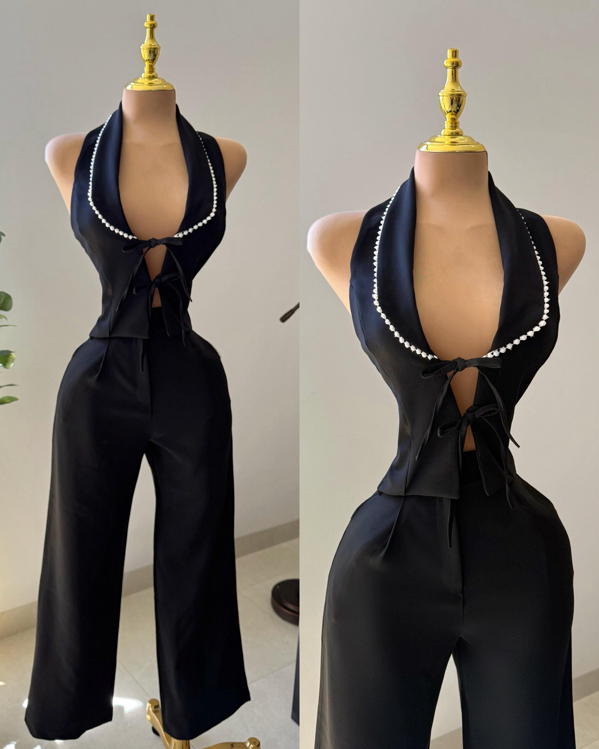 Diseño: Hermoso set, perfecto para cualquier ocasión, tipo halter, detalles en blanco en el borde, unos moños preciosos al frente, estos set son atemporales y les puedes sacar mucho provecho