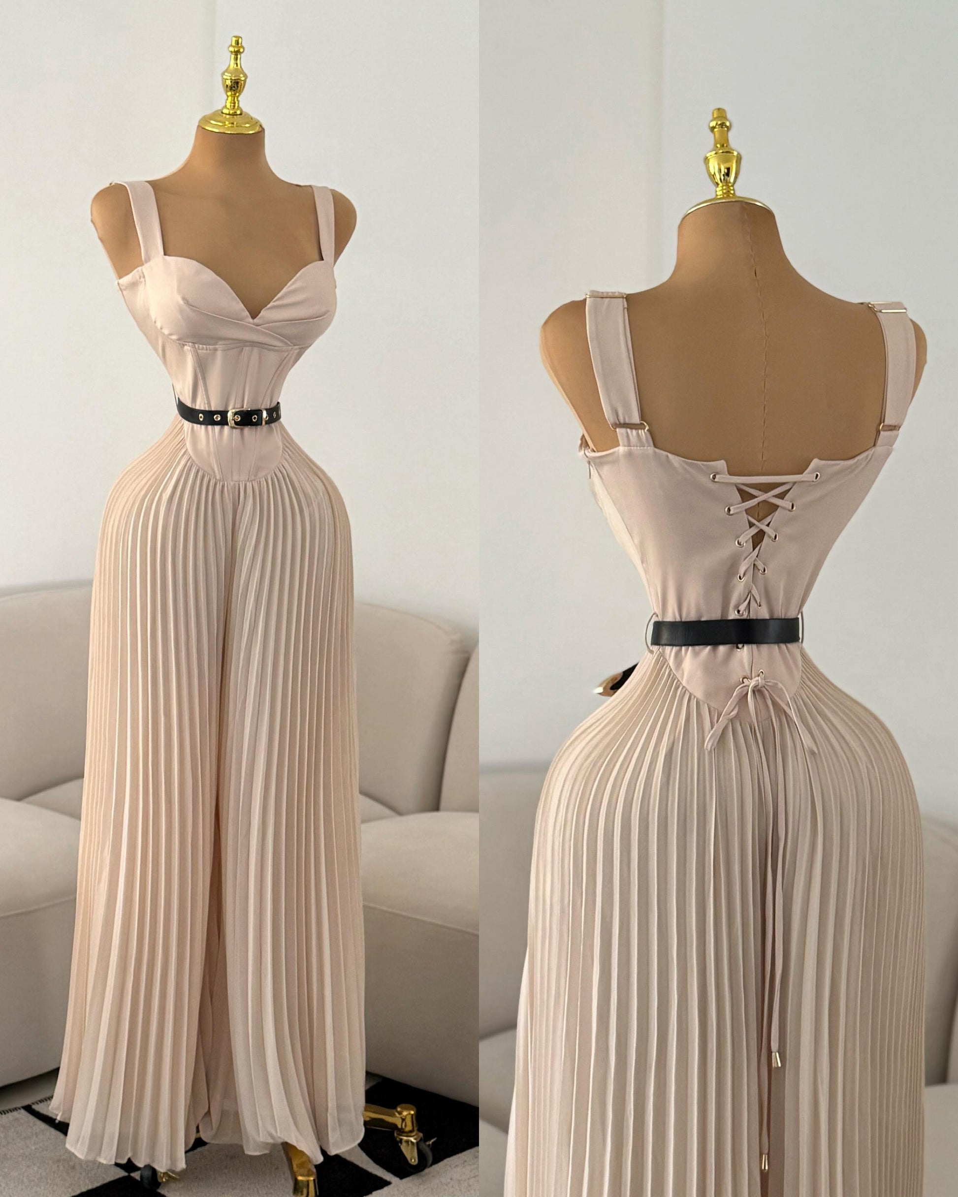 Diseño: Iniciamos con este enterizo precioso, con un movimiento espectacular, la parte de arriba es tipo corsé, se ajusta por atrás e *INCLUYE CINTO*