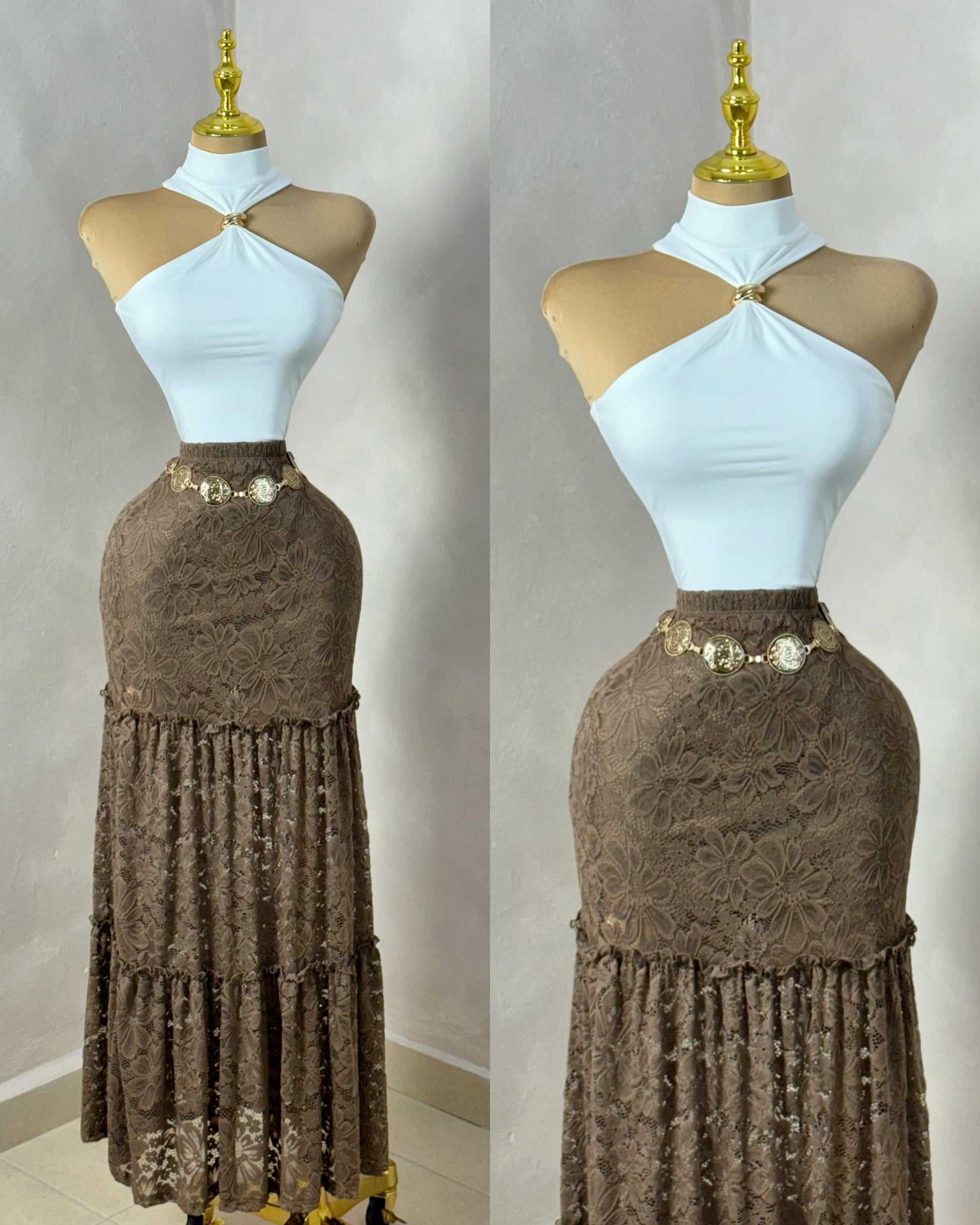 Diseño: Falda en encaje perfecta para la temporada, el cinto no incluye