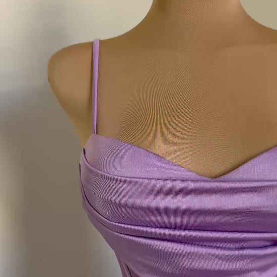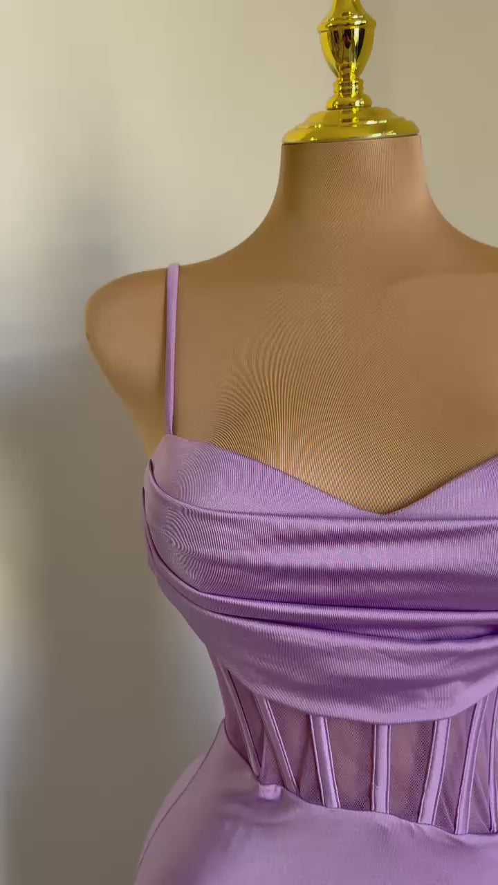 Vestido increíble para tus eventos, y ve esta opción en un tono BABY LILAC, la tela ajusta increíble al cuerpo y las escarolas lo hacen lucir espectacular
