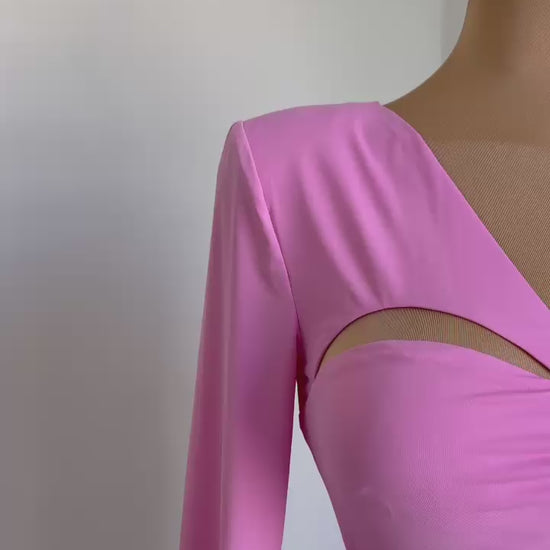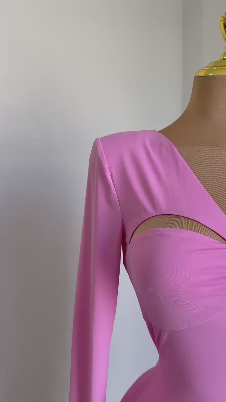 Vestido diferente, espectacular y sofisticado, así describimos este diseño en color rosa en tela doble de lycra, acomoda espectacular al cuerpo