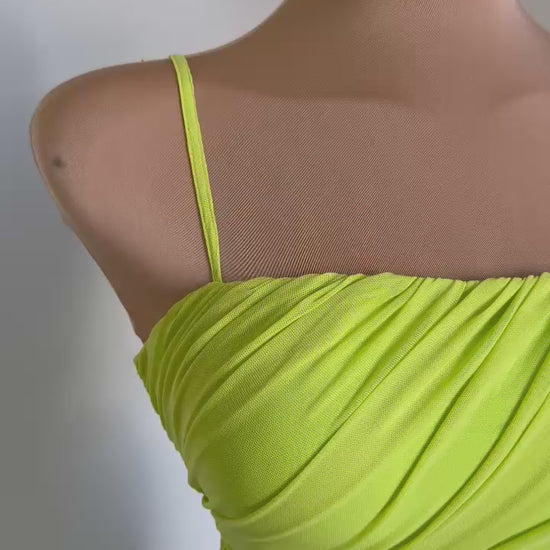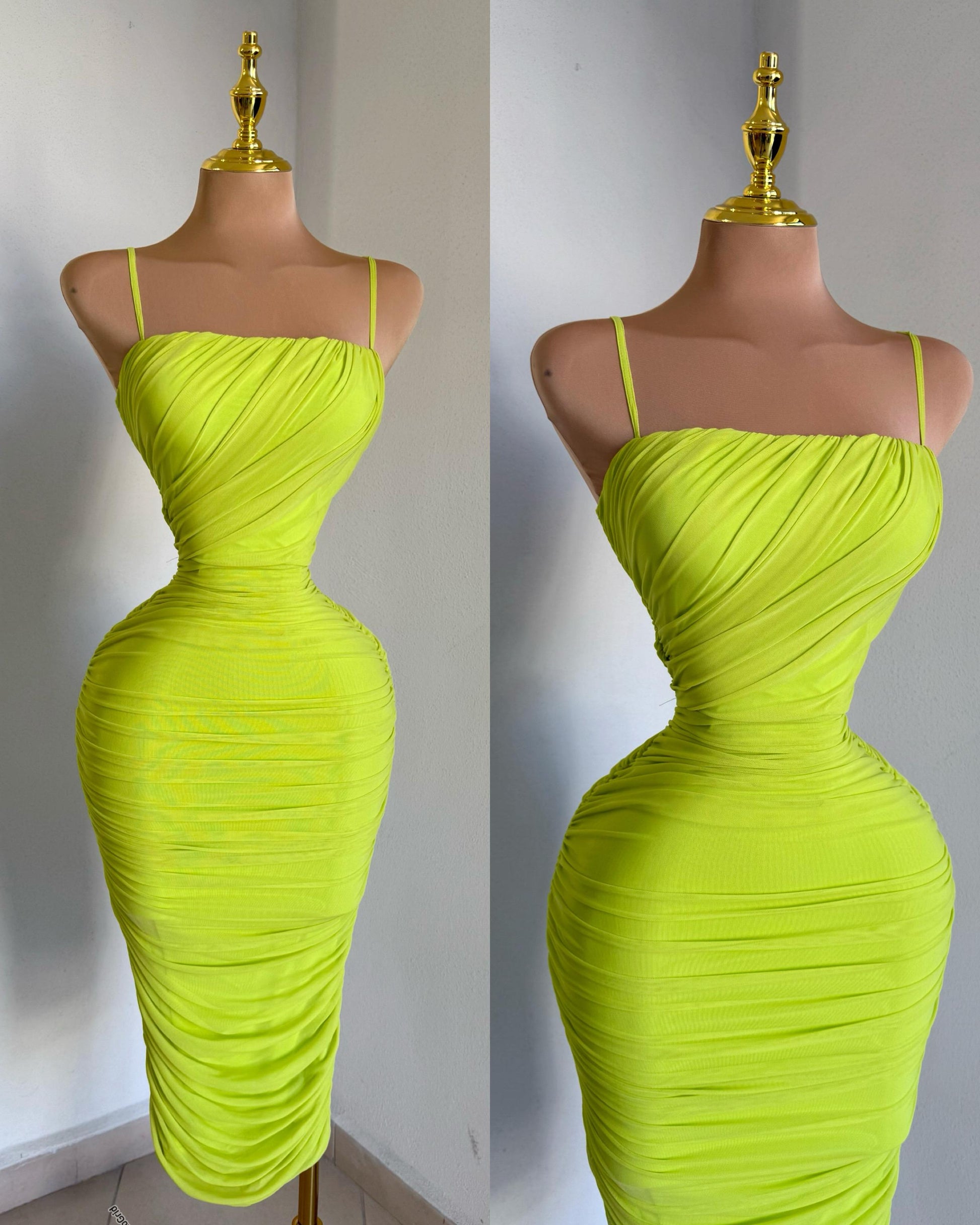 Me encanta este color, un vestido de tela de mesh, ajusta súper padre al cuerpo, lo plisado ayuda a formar una figura de impacto, el corte es midi